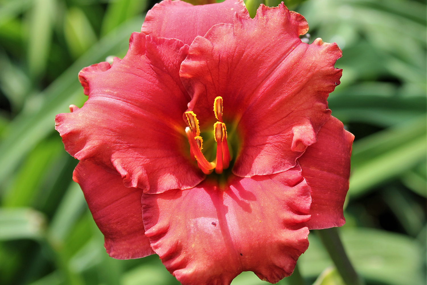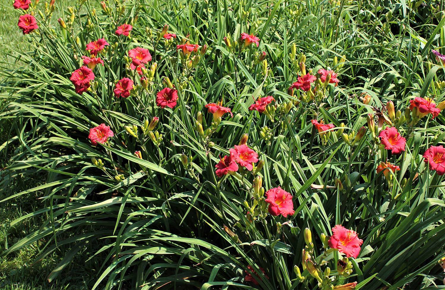 Apps 2021. 28” EM 2.5” Dor. Dip. Raspberry red with yellow green throat. 4 branches and 28 buds. Sdlg. No. 15-227 (‘Holy Jalapeno’ x Sdlg.10-05-1). Named for Darrel’s youngest grandson. A real little beauty with precise detailed miniature flowers on nicely branched scapes. It blooms in Central Wisconsin early July. We’re hoping to see a purple ribbon on this one someday in an accredited daylily flower show.
