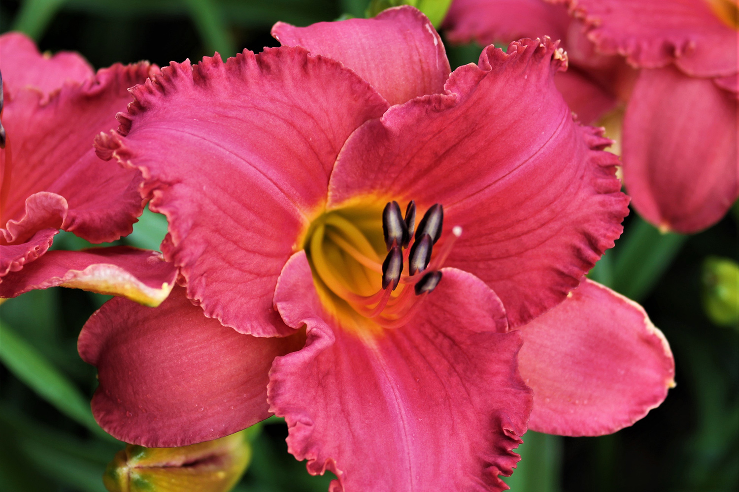 Vibrant pink with light orange throat